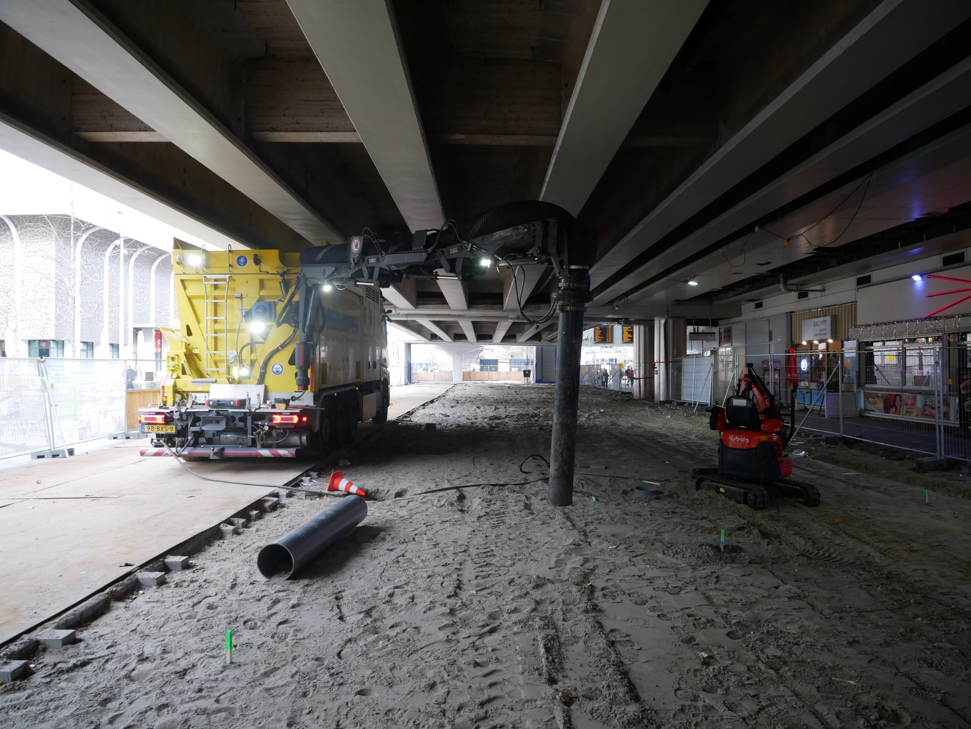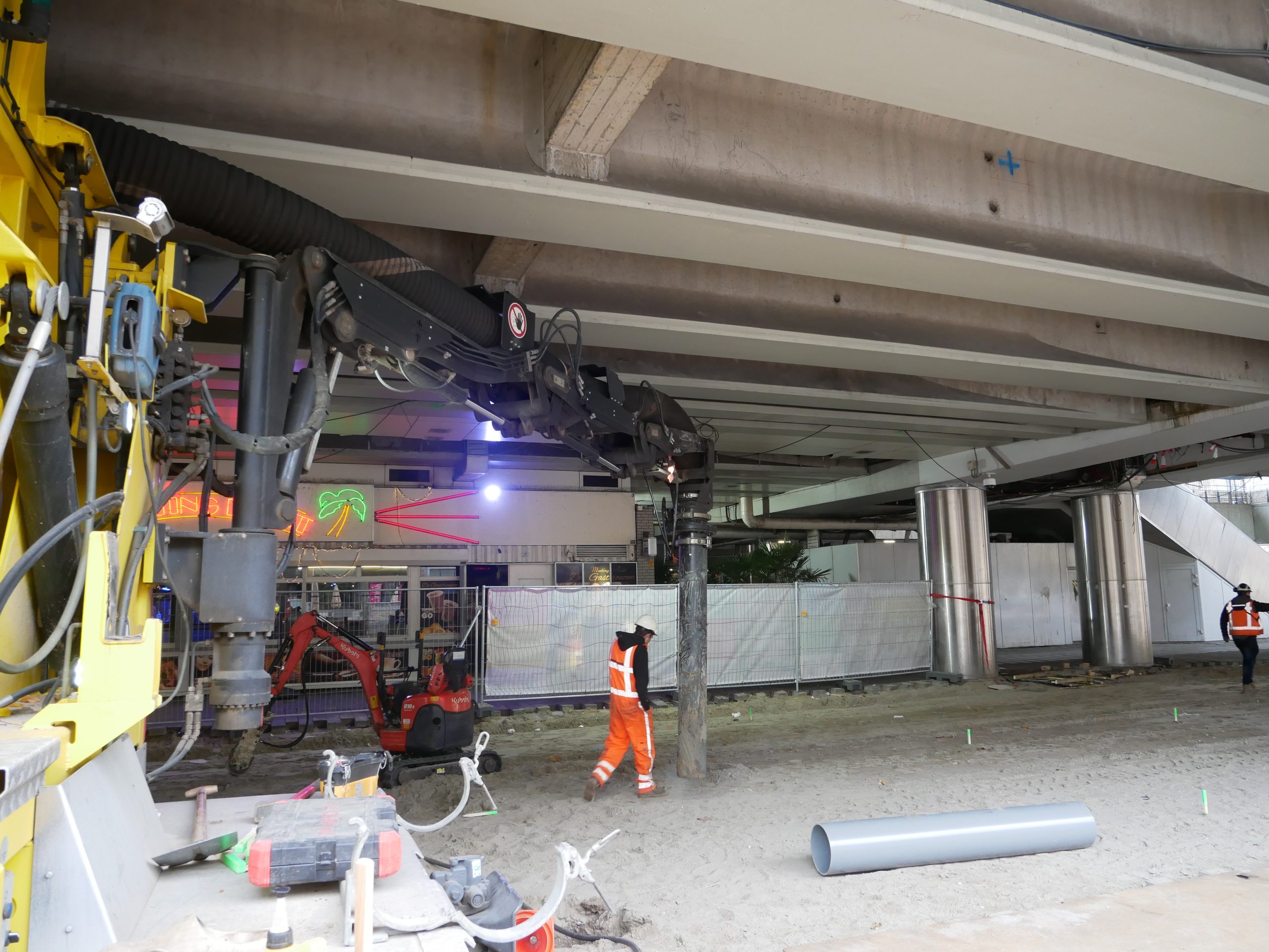 In Rotterdam, bij het Zuidplein Station, hebben wij casings gezogen in voorbereiding op funderingswerkzaamheden. Dit precisiewerk werd uitgevoerd met onze zuigtechniek, om schade aan onderliggende kabels en leidingen te voorkomen tijdens het aanbrengen van de funderingspalen.