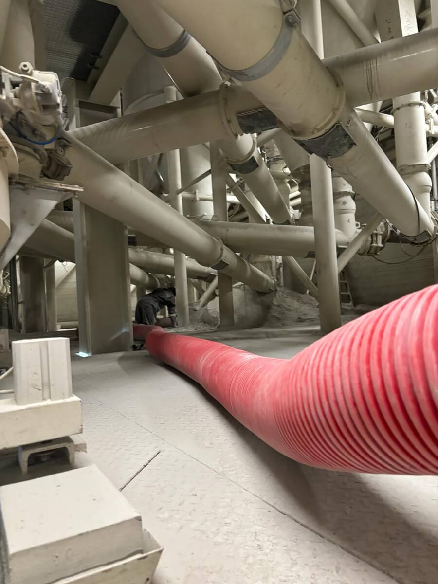 Cement opzuigen naast de silo’s