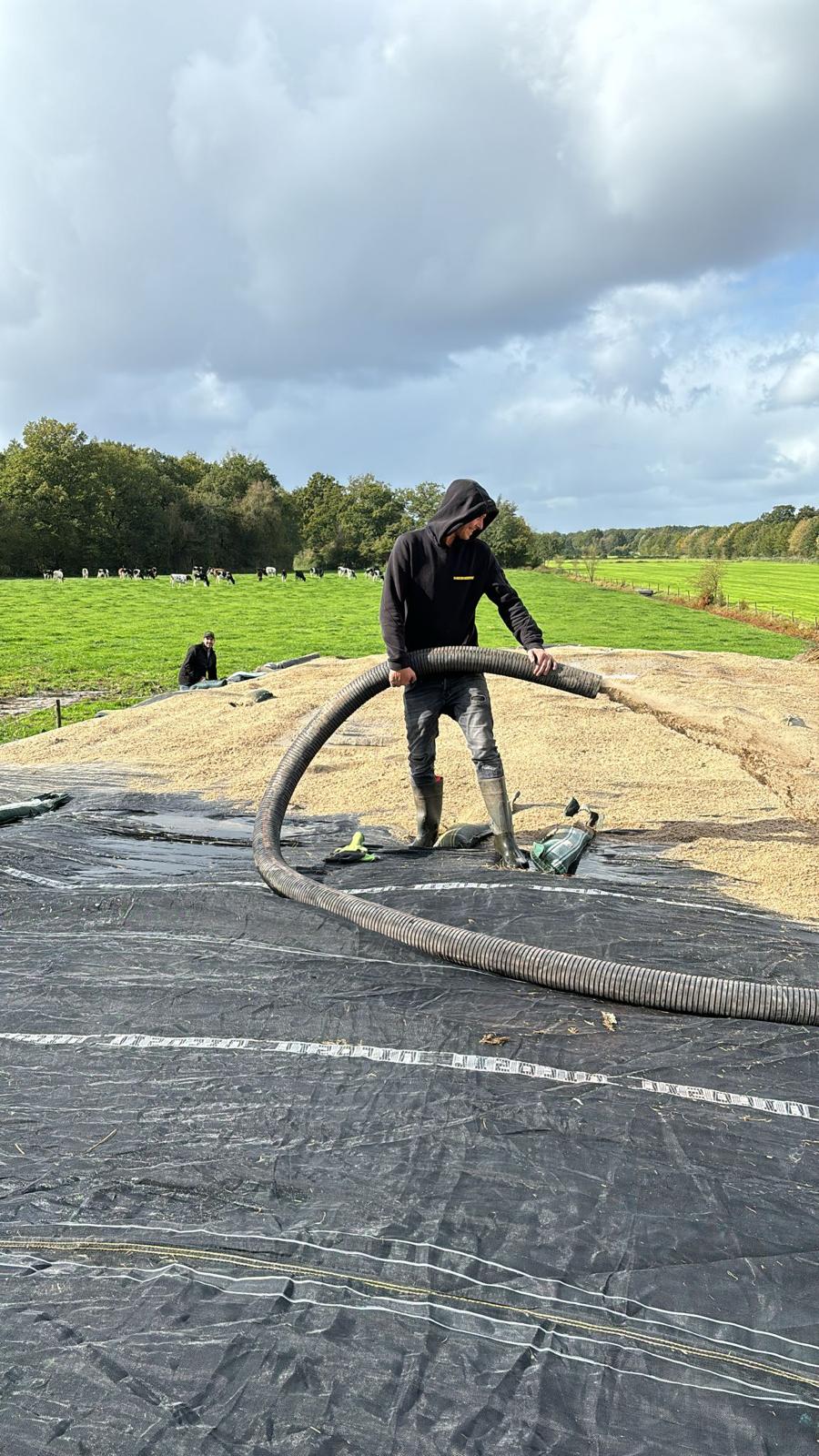 Voor dit agrarisch project in Leusden, hebben wij onze blaastechniek ingezet om een gras- en maïskuil af te dekken met vloerenzand. Waar boeren traditioneel vaak grond met een kraan aanbrengen om druk op de kuilhoop te houden, is hier bewust gekozen voor het opblazen van zand, een efficiënte, schone en nauwkeurige oplossing.
