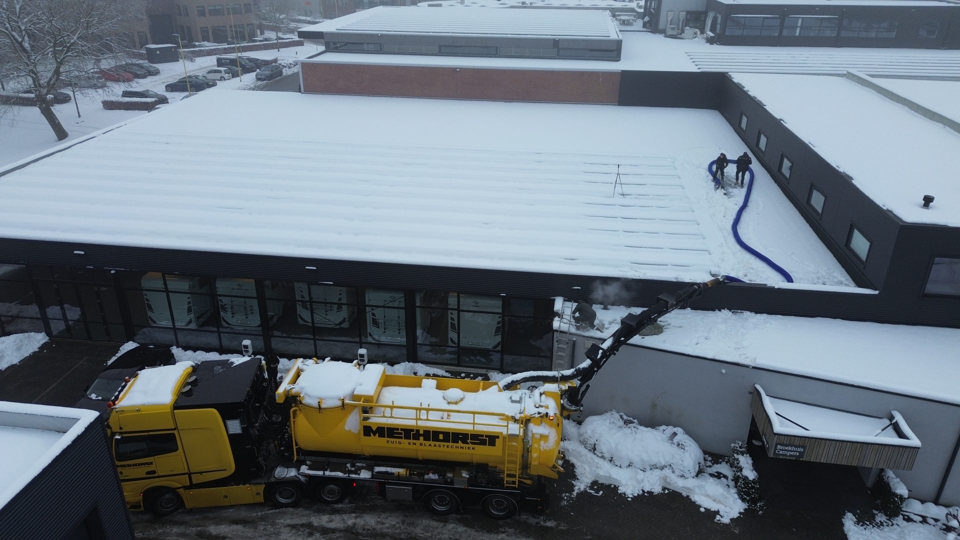 Tijdens deze winterse inzet hebben wij met zuigwagens sneeuw van een plat dak verwijderd om risico’s op sneeuwbelasting en mogelijke dakschade of instorting te voorkomen. Door snel in te grijpen is het dak veilig en sneeuwvrij gemaakt, met speciale aandacht voor waterafvoeren en kwetsbare dakdelen.
